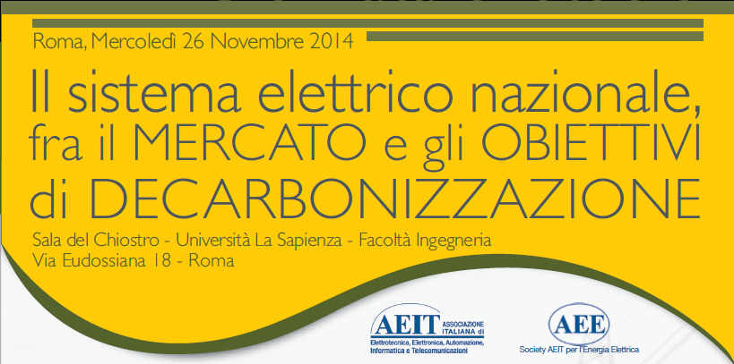 Workshop: Il sistema elettrico nazionale, fra il MERCATO e gli OBIETTIVI di DECARBONIZZAZIONE, Roma ​ Workshop: Il sistema elettrico nazionale, fra il MERCATO e gli OBIETTIVI di DECARBONIZZAZIONE Roma, Mercoledì 26 Novembre 2014 Sala del Chiostro - Università La Sapienza - Facoltà Ingegneria...