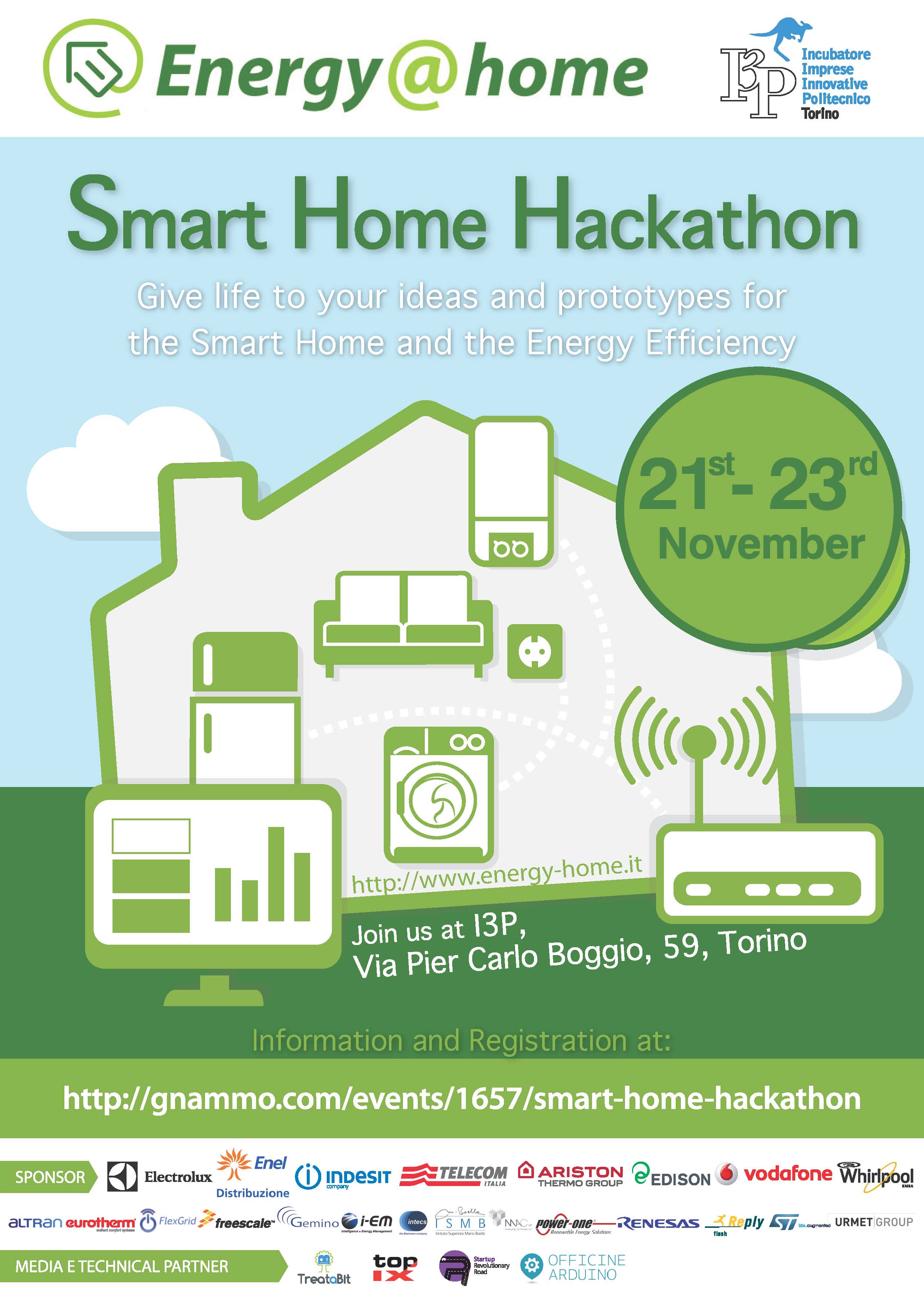 Smart Home Hackathon, Torino, 21-23 Nov 2014 ​ A competition of ideas and fast prototyping promoted by the Energy@home Association and hosted and sponsored by i3P, the Incubator of the Politecnico of Torino. In a weekend participants wil...